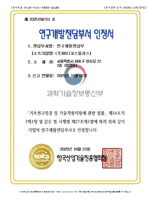 ㈜바디코스플러스는 뷰티와 메디컬의 경계를 넘어 전문적인 손·발 케어 솔루션을 제시하는 기업입니다.