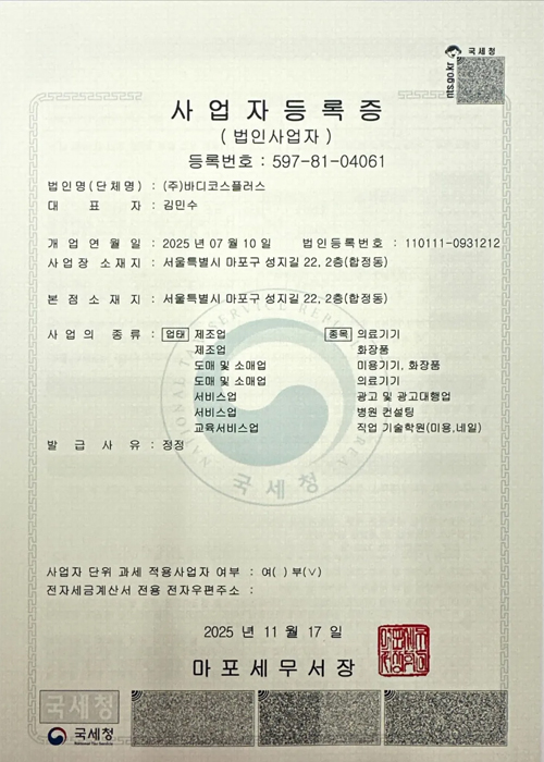 “건강한 손발톱 관리의 새로운 기준, ㈜바디코스플러스가 만들어갑니다.”